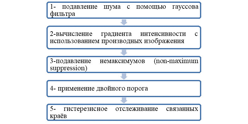 Рис. 3. Последовательные этапы алгоритма Кэнни при выявлении краев и обработке изображений [12]