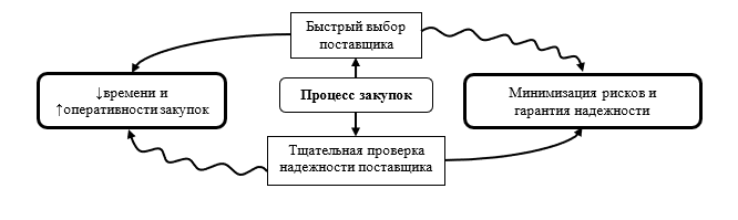 Рис. 4. Противоречие между оперативностью и надежностью в процессе закупок