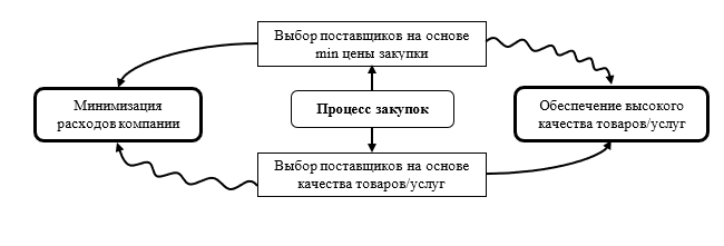 Рис. 5. Противоречие между минимизацией расходов компании и обеспечением высокого качества товаров или услуг