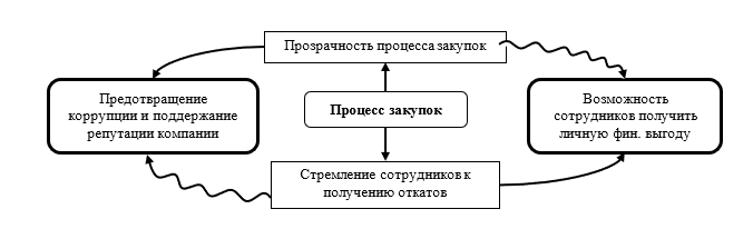 Рис. 7. Противоречие между прозрачностью процесса закупок и стремлением сотрудников получить личную финансовую выгоду