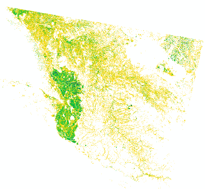 - Значения NDVI менее 0,1 соответствуют участкам песка, камней или снега.