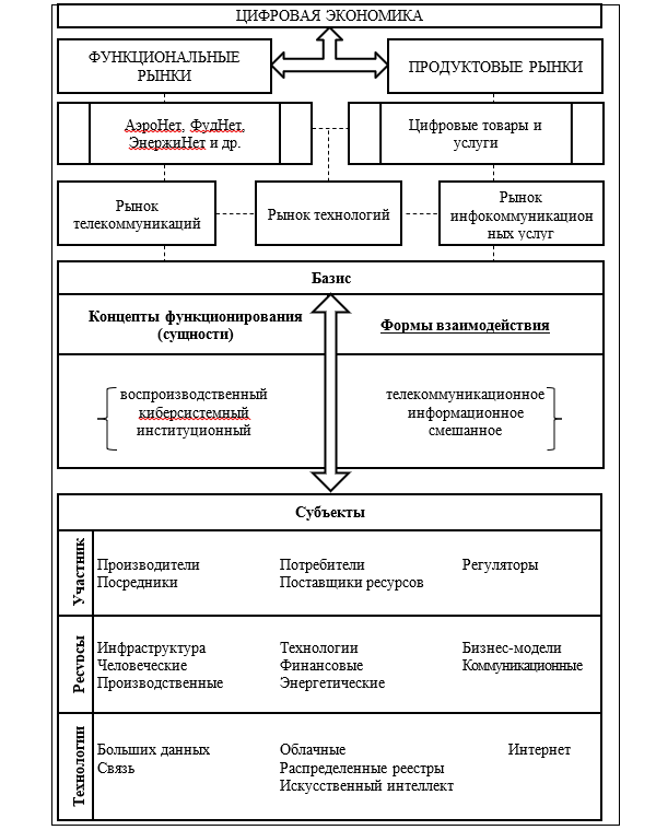 На схеме представлена обобщенная логика взаимодействия участников рынка, которая может стать основой для формирования моделей и инструментов регулирования. Согласно предлагаемого представления механизма развития рынка ИКУ воздействие на микробизнес должно осуществляться комплексно, с задействованием всех доступных инструментов, включая самоорганизационные. Их проявление на рынке обусловлено сложившимся типом «чистой конкуренции» в силу большого числа участников, низкого порога входа-выхода на рынок ИКУ, доминирования технологических ограничений и географической привязки к объектам инфраструктуры, большого видового разнообразия форм и видов предпринимательской деятельности субъектов рынка. Таким образом, в нашем исследовании актуализируется необходимость концептуализации рынка ИКУ в условиях цифровизации микробизнеса на основе функционального доступа к соответствующим технологиям, определяющих отраслевую специфику микробизнеса, а также его бизнес-модель.